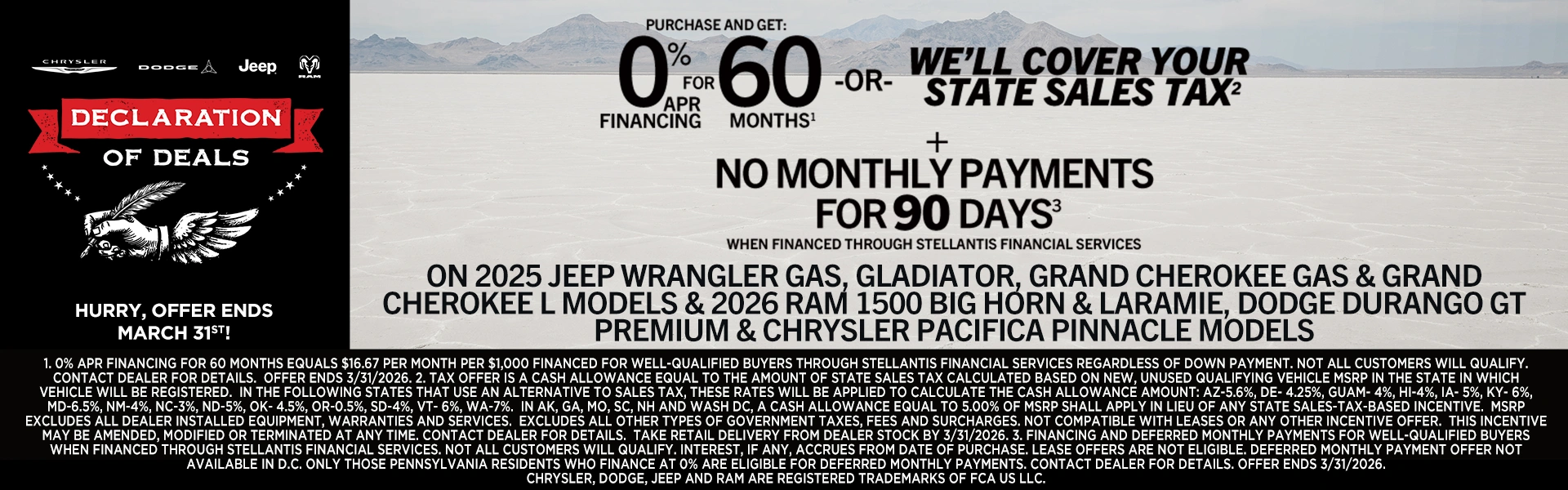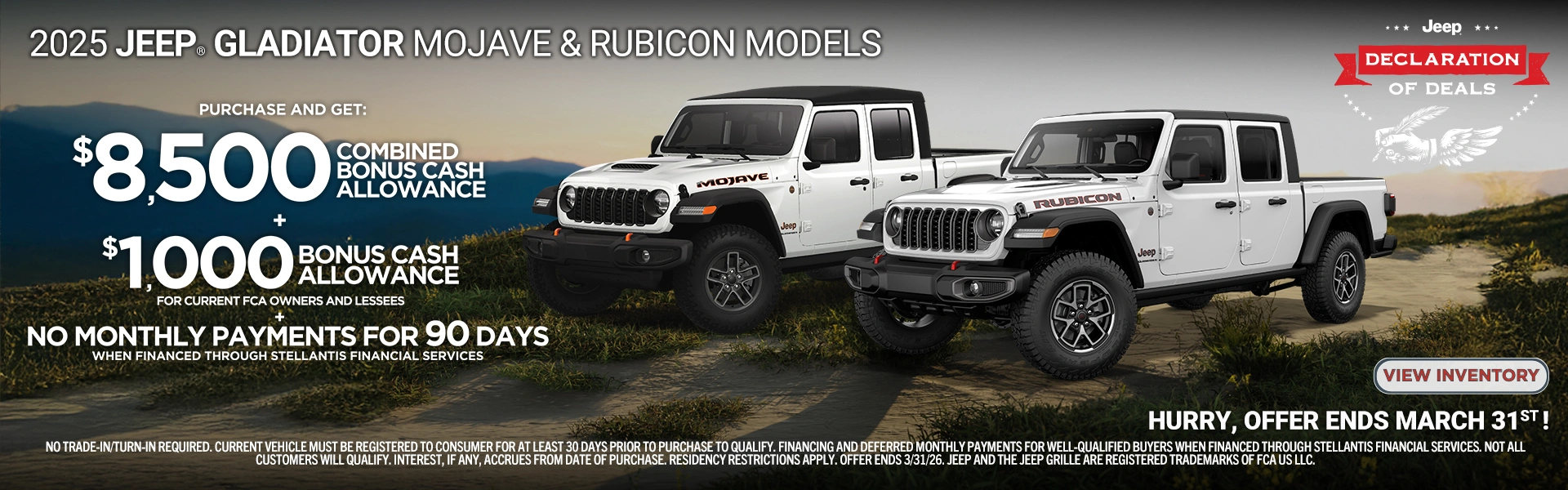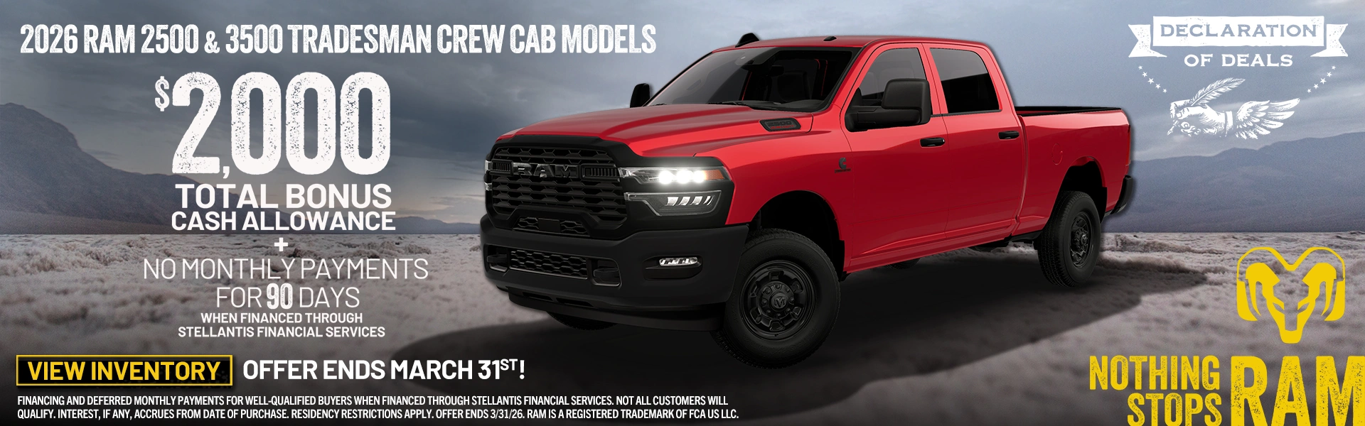 We proudly offer a wide variety of competitively priced new vehicles such as capable pickup trucks like the RAM 1500 and RAM 2500, the thrilling Dodge Challenger muscle car, the incredible Jeep Grand Cherokee SUV, and the powerful and luxurious Jeep Wagoneer. We also offer commercial vehicles as well.