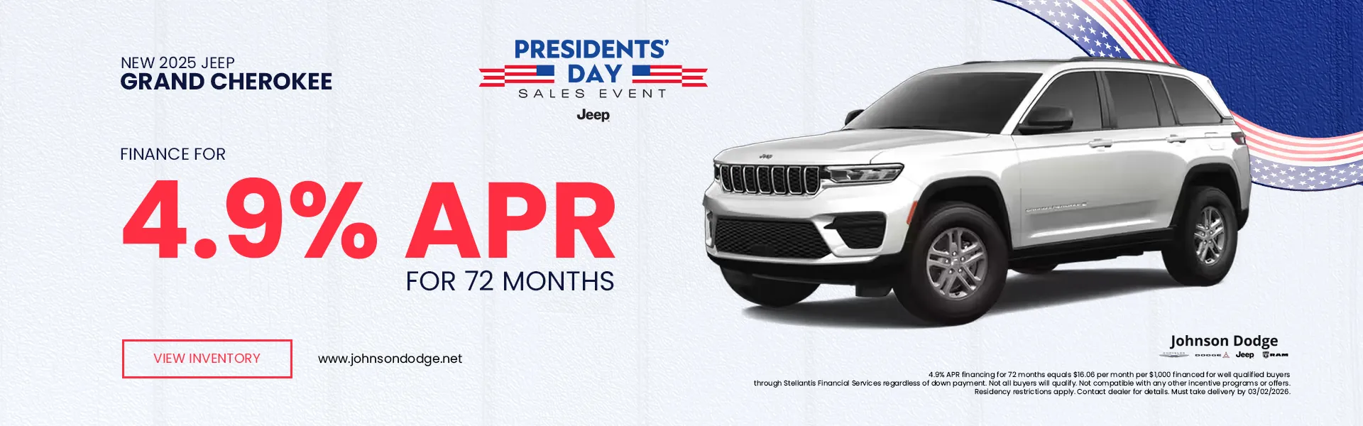At Johnson Dodge, we proudly support our local community, and we go above and beyond to provide excellent customer service. What can our team at Johnson Dodge Chrysler Jeep help you with today? Contact us online or visit us in person for support with your purchase plans or service needs